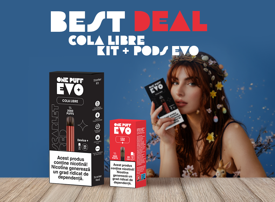 – un kit EVO cu 1 device – reîncărcabil și 2 pods incluse – 2.000 pufuri